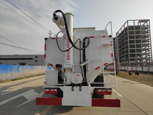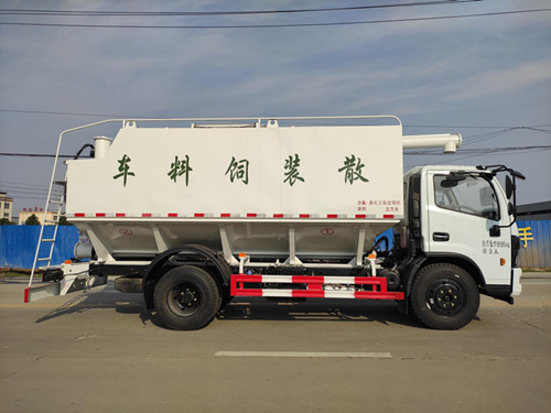 散裝飼料運(yùn)輸車,散裝飼料車的飼料罐架設(shè)在卡車的底盤上,罐頂開(kāi)有進(jìn)料口.頂部的一根螺旋輸送卸料管(俗稱卸料絞龍)則可自由回轉(zhuǎn)和抬升,抬升的仰角可達(dá)60度。運(yùn)輸時(shí),頂部的螺旋管平臥在罐頂;卸料時(shí)則抬起,使管端的出料口與畜禽飼養(yǎng)場(chǎng)貯料罐頂部的進(jìn)料門相接,駕駛室內(nèi)裝有操縱裝置(操縱裝置也可裝置在罐體尾部),卸料時(shí)通過(guò)車底的動(dòng)力輸出軸和減速器來(lái)驅(qū)動(dòng)螺旋,以完成卸料。