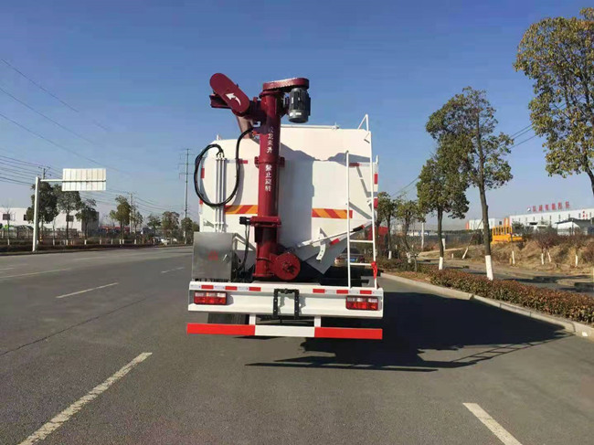 散裝飼料運輸車,散裝飼料車的飼料罐架設在卡車的底盤上,罐頂開有進料口.頂部的一根螺旋輸送卸料管(俗稱卸料絞龍)則可自由回轉(zhuǎn)和抬升,抬升的仰角可達60度。運輸時,頂部的螺旋管平臥在罐頂;卸料時則抬起,使管端的出料口與畜禽飼養(yǎng)場貯料罐頂部的進料門相接,駕駛室內(nèi)裝有操縱裝置(操縱裝置也可裝置在罐體尾部),卸料時通過車底的動力輸出軸和減速器來驅(qū)動螺旋,以完成卸料。