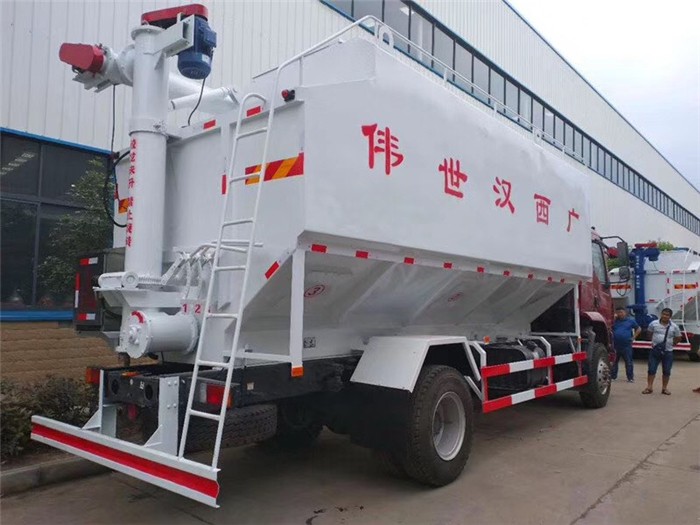上裝配置:罐體采用4mm優(yōu)質(zhì)鈦鋼板制作,罐體分為叁個(gè)倉(cāng)(可根據(jù)用戶需求做多個(gè)分倉(cāng)),可以各分倉(cāng)卸料順序和速度,整車3條絞龍(底部水平絞龍、尾部垂直絞龍、頂部舉升絞龍),由3個(gè)5.5kw 380v電機(jī)帶動(dòng)各絞龍工作,頂部絞龍液壓舉升,可左右旋轉(zhuǎn)180° 此車公告+環(huán)保+燃油齊全,全國(guó)上戶無(wú)憂!