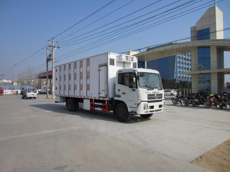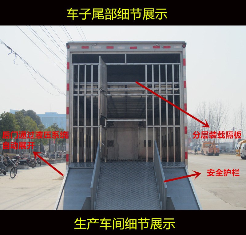東風(fēng)天錦多功能雛禽運(yùn)輸車(chē) 該車(chē)采用東風(fēng)天錦畜禽運(yùn)輸車(chē)專(zhuān)用底盤(pán),排半駕駛室,康明斯180馬力柴油發(fā)動(dòng)機(jī),5900ml排量。8檔變速箱、9噸后橋、 10.00R20 18PR鋼絲胎、動(dòng)力轉(zhuǎn)向、空調(diào)、離合助力、斷氣剎、ABS,該車(chē)適用于成品或半成品畜禽運(yùn)輸。